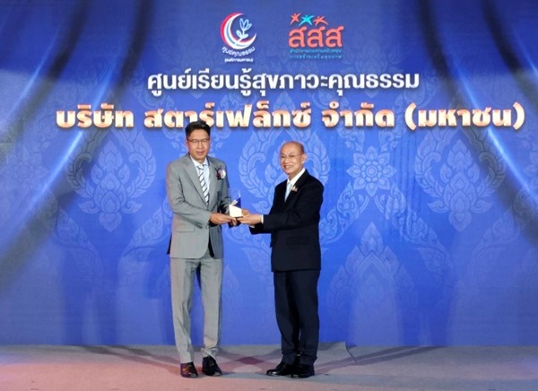 บริษัท สตาร์เฟล็กซ์ จำกัด (มหาชน) โดยคุณสมโภชน์ วัลยะเสวี ประธานเจ้าหน้าที่บริหาร รับรางวัล “Happy@Moral Business Award 2024” ศูนย์เรียนรู้สุขภาวะคุณธรรม จากศูนย์คุณธรรม (องค์การมหาชน) และ สสส. มอบโดย นายแพทย์เกษม วัฒนชัย องคมนตรี สำหรับองค์กรที่มีสุขภาวะคุณธรรมที่ดี มุ่งเน้นการส่งเสริมภาคปฎิบัติการนำไปใช้ให้เกิดประโยชน์สูงสุด และมาตรฐานด้านคุณธรรมอย่างยั่งยืน เมื่อวันศุกร์ที่ 16 สิงหาคม 2567 โรงแรม อมารีดอนเมือง แอร์พอร์ต